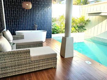 Очень новый отель, прекрасно расположен, классно что из каждого номера выход в бассейн. Территория зеленая. Мы заплатили 3000 бат за сутки с завтраком, что отличная цена для отеля такого уровня. Также спасибо персоналу что разрешили выехать на час позже