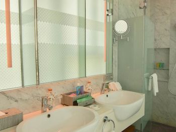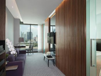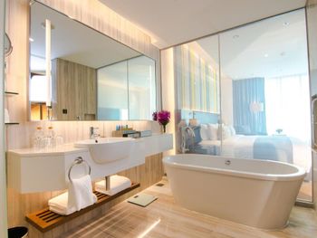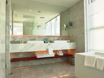 Красивый, современный отель, есть все необходимое. Из фишек: Затемняющееся стекло-стена в ванной Красивый вид с верхних этажей Хороший матрасы и подушки Приятные, не банальные ароматы в душе (шампунь, гель, бальзам)