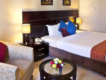 Светлые номера отеля Landmark Riqqa оформлены в современном стиле. В номерах имеется просторная гостиная с диваном и 32-дюймовым телевизором с плоским экраном, по которому можно посмотреть кабельные каналы. В ванной комнате для гостей подготовлены роскошные туалетные принадлежности.