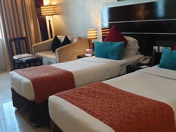 расположение рядом с мечетью. ужасная шумоизоляция. мечеть находится в 150-300 метрах от отеля, поют там ежедневно с 5:00 до 6:00 утра, потом в 8;00, в .12,:00 и на протяжении всего дня. спать мешает жутко, песнопения длятся 30 минут в основном. поют в микрофон с эхом, отчего звук раздаётся на всю улицу. номер - отдельная история. из света там всего 3 лампы: две у кровати одна на столе. лампа на столе в ужасных, страшных разводах (тканевая), будто на неё что-то пролили. белье меняют с дырками (на подушках, на простыне). декоративные подушки тоже с дырками от сигарет. кресло рядом с кроватью в разводах жирных. брали номер с одной большой кроватью - заселили в номер с двумя раздельными, объединив их, из-за чего единственная розетка, под которую подходит наша зарядка была закрыта подушками. чтобы зарядить телефон, свет в коридоре должен быть включён, иначе тока нет. лампы на потолке нет, там только пожарная сигнализация. света не хватает категорически, дополнительный не дадут, пытались выпросить. ванна - трагедия! кран течёт, ванна в плесени, отель нуждается в реконструкции очень. тапочек не дают, завтрак печальный. подают либо острое, либо безвкусное. в первые два дня была депрессия от отеля, потом смирение. цена - качество никакого соотношения. за эту стоимость можно было в приличные 3 звёзды въехать, недели в эти неоправданные 4. учтите, что на ресепшене плохо говорят на англ. если вы сами его плохо знаете, то там будет шоу из двух ничего не понимающих что происходит людей.