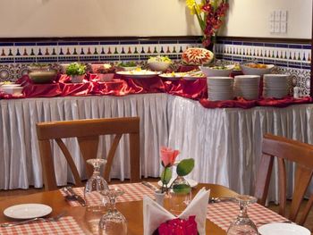 По утрам в отеле Plaza накрывают завтрак «шведский стол». В ресторане Shamiana готовят блюда интернациональной кухни. В круглосуточном кафе Al Sadeeq можно заказать разнообразные закуски и напитки. В фойе отеля в атриуме расположен собственный торговый центр с 50 различными магазинами.
