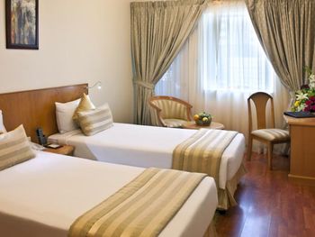 Отель расположен в очень удобном месте. Напротив отеля находится метро, недалеко магазины по оптовой и розничной торговле телефонами, электро-бытовой техники, посуды, а также Голд Соук ( Золотая улица), где можно приобрести ювелирные изделия известных брендов по приемлемой цене. При заезде в отель на регистрации приняли ко вниманию наши пожелания и дали нам номер на 8 этаже с балконом и видом на парк (см фото). Комнаты в этом отеле просторные, вид с балкона хороший (см фото). Неподалёку в Twin Tower в ресторане Daniel за 70 дирхам за вход можно насладиться разными видами блюд из риса, мяса, курицы, рыбы. и креветок.