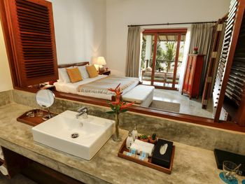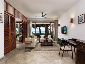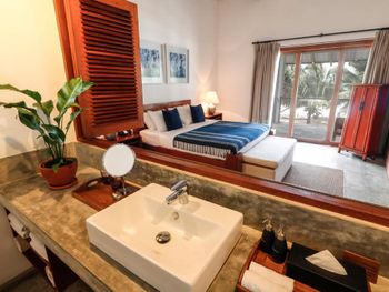 пляж невероятно красивый, людей очень мало, чаще-никого, правда иногда волны мешают спокойно зайти и поплавать. возможно такой сезон. персонал прекрасный, доброжелательные. готовят хорошо, ребенок любит супы, нам готовили куриный и чечевичный, хотя их не было в меню. Балийский массаж в местном спа тоже был хорош. по пляжу и по территории бегают собаки, тоже очень доброжелательные, варанчики, бурундуки, хамелеоны. черепахи откладывают яйца, местные их спасают-то что собаки и вараны не съели и потом пару раз в неделю происходит ритуал выпускания новорожденных черепашек в море. Номер сьют прекрасен, можно не выходя провести полноценный отпуск.