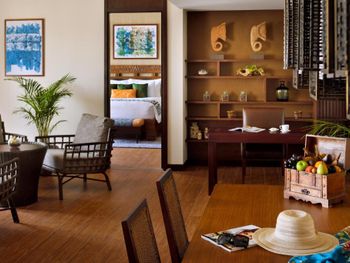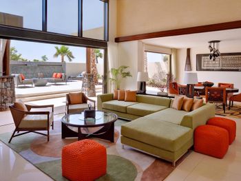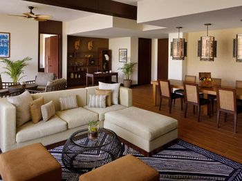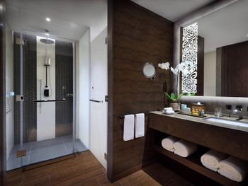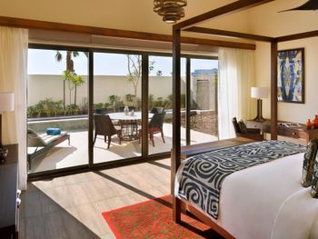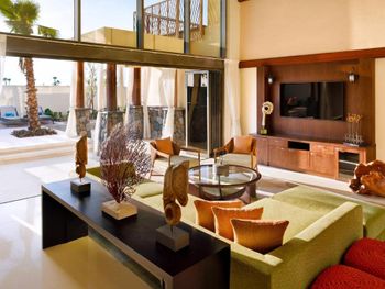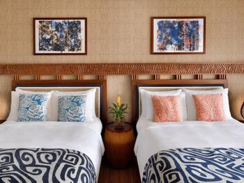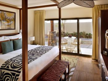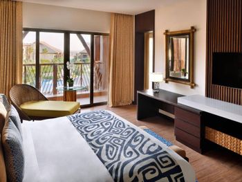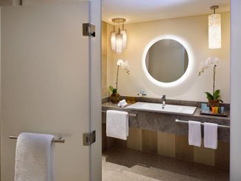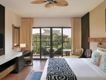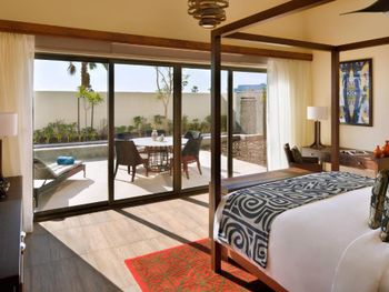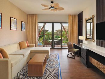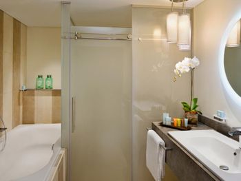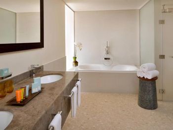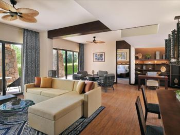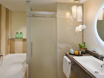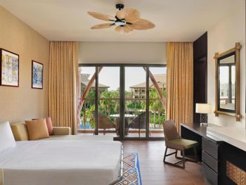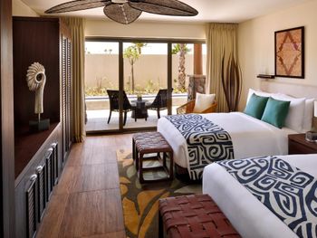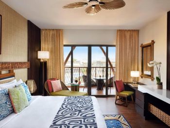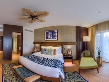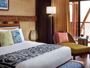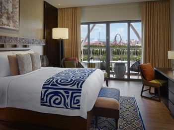 К услугам гостей 504 просторных номера, люкса и виллы с собственным балконом или террасой, где можно отдохнуть после насыщенного дня в парке аттракционов. В распоряжении гостей роскошные кровати, мини-бар и рабочий стол. В гостином уголке установлен телевизор со светодиодной подсветкой и спутниковыми каналами. Ванная комната отделана мрамором.