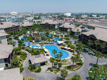 Прекрасный отель для отдыха с детьми. Парки развлечений рядом, вход 1 ночь - 1 парк на выбор. 3 ночи - безлимит во все парки. Бассейны, ленивая речка, в мае людей не так много даже в выходной. Заказывали семейный завтрак в номер, огромные порции и очень вкусно. Персонал максимально старается сделать отдых комфортным. Нас заселили в 6.30 утра за совсем небольшую доплату, большая благодарность персоналу! Рядом outlet village, там же небольшой супермаркет и несколько кафешек. Можно погулять по river island, красиво и атмосферно, бесплатно парк достопримечательности в миниатюре.