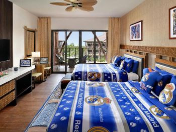 Удобно расположен, до парков идти не далеко, от здания до входа в парк возит машинка, очень близко, можно и самим дотопать, но мы пользовались по возвращению, так как в парках устаешь.номер был чистый, вода, кофе, чай в номере, была еще и гладилка с утюгом. На завтрак муж раньше меня спустился с детьми, позже вышла я-, на завтрак не пустят если не скажите номер комнаты, ок, узнала номер комнаты-не пускали снова - сказали что у нас не оплачен завтрак, искала минут 5 по бумагам и не хотела впускать, хотя муж и дети уже завтракали и завтрак уже заканчивался, так как я спустилась в 10:30, а завтрак до 11, я объясняла что у нас всё оплачено, муж на телефон не отвечал, так как был занят с детьми т не слышал звонков, а я будто я как воровка хочу зайти на завтрак, короче меня в итоге впустили. И как уже потом сказал мне муж , у нас был депозит на номер, что было не указанно видимо в бумагах у пропускающей малаазийки или филиппинки, я считаю что отель должен учитывать и людей с депозитами. Я потратила своё время на эти разбирательства, и меня поставили в неловкое положение, что неприятно.
