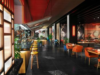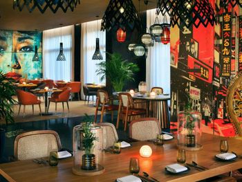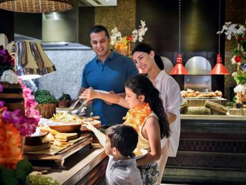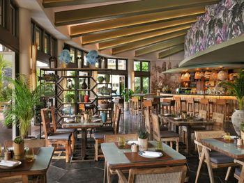 1.По картинкам (в основном я подтверждаю это) вы попадаете в спокойный курортный комплекс с интерьерами помещений в полинезийском стиле. У нас был полупансион. Однако, все дни завтрак превращался в невероятный восточный базар, но не в положительном колоритно-культурном смысле, а в отрицательном вокзально-орущем. Огромное количество местных жителей семьями с детьми с присущей спецификой. Ни столов, ни персонала явно не хватает, хотя взмыленный персонал умудряется справляться с этим пионерлагерем после маршброска. И ваши ожидания о спокойной прогулочке по территории утром, размеренном завтраке просто разбиваются об этот общепит. На ресепшен мне подтвердили, что на 500 номеров ресторан не рассчитан и, что местные берут только завтраки в основном. Возможно мы попали на какие-нибудь местные каникулы, но это за такие деньги недопустимо. Вечером ужин уже спокойный. В основном наши соотечественники в небольшом количестве и европейцы. Все спокойно и размеренно. Нас завтраки не сильно расстроили, поскольку сюда заезжали ради парков и в ресторане только удовлетворяли биологические потребности, но имейте ввиду. Если не будете брать завтрак, а будете питаться в других ресторанах отеля или на территории Риверленда, вы этого негатива не коснетесь.