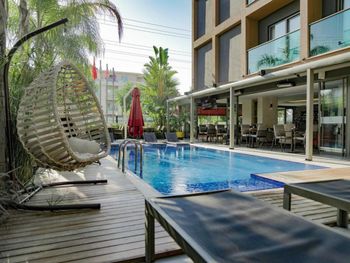 Очень приветливый персонал, тихо, чисто. Очень красивые окрестности - много кафе и ресторанов, близко к аэропорту. Останавливались именно поэтому. Завтрак на 3 этаже - очень хороший вид , завтрак тоже . Есть бассейн, разрезают плавать дольше, чем указано в правилах . На пляж везут, но мы не ездили. В целом очень уютный отель на свои деньги.
