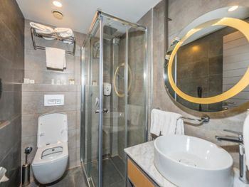 Мы заказывали большой по размеру номер, люкс, но, по факту, нам дали обычный, стандартный и сказали, что номера все одинаковые, маленькие по размеру. Никакого SPA, хотя обещали хамам. Шведского стола нет. Вам предложат уже готовую яичницу-омлет (для меня было слишком остро, но там не готовят, только разогревают в микроволновке) и тарелку с одинаковыми каждый день сырами(маленькими кусочками), для меня невкусными. И с ужасными 2-мя кусочками, микроскопическими, колбасы. 2 сухофрукта и дольку апельсина, чай, кофе так себе.