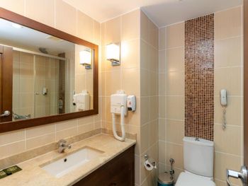 Номер маленький, но комфортный. Наверное надо бронировать побольше, если надолго отдыхать. Душ хороший. Бассейн чистый, довольно большой. Пляж хороший. Еда постоянно, без очередей, хорошая. Понравился и завтрак и обед и ужин. На перекусы всегда есть гамбургеры, фри, салаты, фрукты, мороженное, вафли, напитки, арбуз и прочее. После чек аут разрешили остаться в отеле. Парковка большая и удобная. Отель расположен в отдельном заливе, рядом отель Кемпински в отдельной бухточке, по соседству совсем маленький отельчик. Можно смело брать отель, если цена хорошая и хотите загорать и купаться, с хорошим питанием и без очередей.