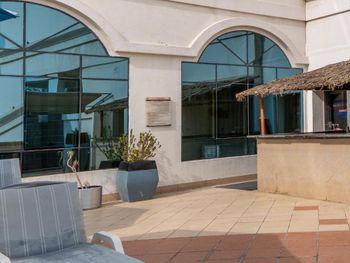 Бассейн маленький. Окно на море и дорогу она прямо под окном и стеклопакеты очень дешёвые, так что весь трафик в порт(который в конце улицы) фуры и тд, будут ездить вам по голове. Выдержали две ночи и съехали.