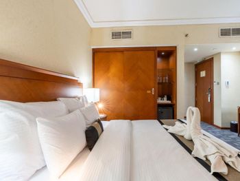 1. В комнате пахло сыростью; 2. В душевой кабине невозможно помыться, щели между стёклами и вода вытекает на пол; 3. При уборке номера не доставляли обычную воду и вычли за бутылку обычной воды из мини-бара, хотя мы ее не пили, а купили свою.