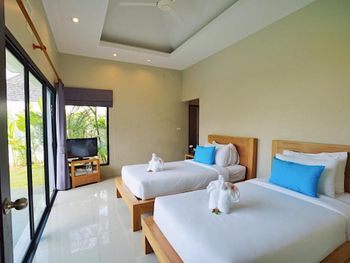 Большое спасибо приветливому и дружелюбному персоналу. Главный менеджер Songsak, с первых минут прибывания нас обрадовал, повысив уровень виллы так как у них были на тот момент свободные виллы. При заказе завтраков каждый день делали нам подарки в виде нового блюда. Свежие фрукты, соки каждое утро. Вилла чистая с хорошей планировкой, если вы заезжайте с друзьями, то приватность остаётся так как комнаты далеко друг от друга. В итоге мы вдвоем жили на вилле с 3-мя кондиционерами и 3-мя телевизорами?. Есть гараж чтобы ваша машина или байк не нагревались на солнце. Бассейн чистый и достаточной величины. По глубине бассейн разделен на 2 части, в одной глубина по пояс взрослому человеку, тут могут плавать ваши дети, вторая часть бассейна глубже. Каждый день меняют все полотенца в том числе и для бассейна. Есть специальный плавающий столик для бассейна. Пальмы создают классную тень для части бассейна. Насекомых вообще не было, не знаю как им это удается. Если только вы не оставите на столе чего нибудь, через часа 2 могут появится мини муравьи, но это будет ваша вина? В шаговой доступности есть 7/11. Вилла оборудована всей нужной техникой. Буду на Пхукете обязательно вернусь сюда снова. Спасибо.