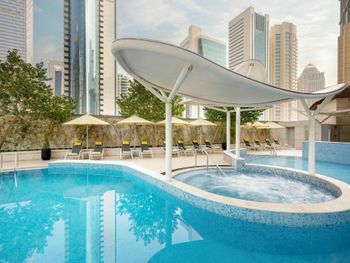 Гости отеля с 5 звездами Le Meridien City Center Doha могут воспользоваться крытым бассейном и гидромассажной ванной.