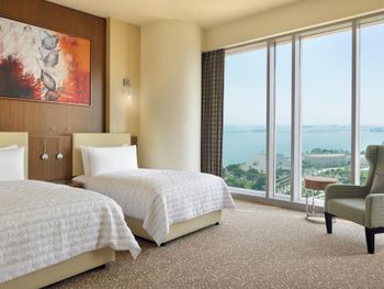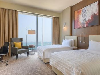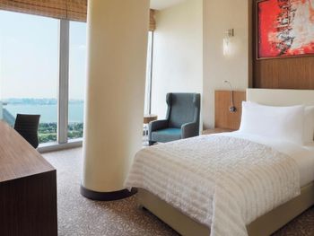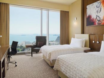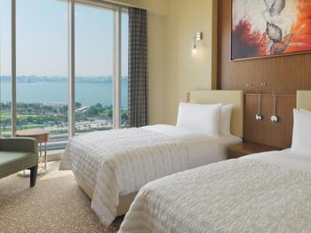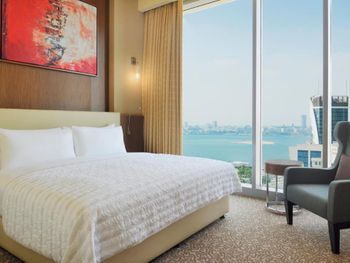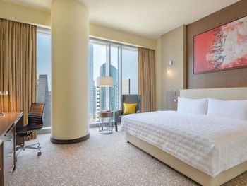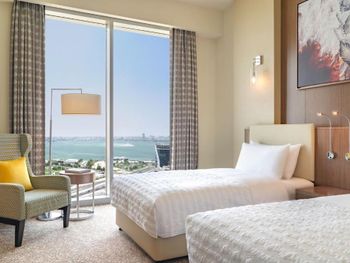 Отличное расположение , шаговая доступность к выставочному центру, проход в Молл через отель Отличные удобные кровати, кофемашина капсульная и чайник. Воды питьевой очень много, это важно, в Катаре питьевая вода дорогая. При заезде выдают книжечку со скидочными флаерами на разные услуги отеля, мелочь, а приятно, по разу будет скидка везде. При заезде сделали апгрейд номера, видимо, ввиду длительного проживания, здесь от 7 ночей идут спец тарифы уже.