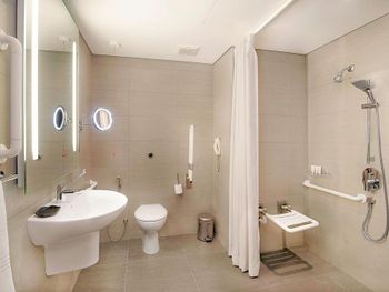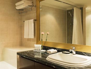 Меня сначала разместили в грязном очень и очень плохо пахнущем номере!!! С ванной в которую можно только забраться - залезть на бортик ванны, что опасно! стекло у ванны не открывается! Вопрос : как ноги мыть и как поводу в душе выключать?? Это совершенно не тянет на 5 звезд , на 4 ре и на 3 звезды тоже!! Мебель поцарапанная , плинтус под занавеской отрывается, занавеску открыла а там тонны пыли и также тонны пыли в тумбочках , в уголках и прочее.