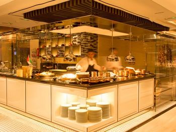 Есть на территории кафе и рестораны с вкусной кухней на выбор ! Также бар .