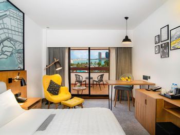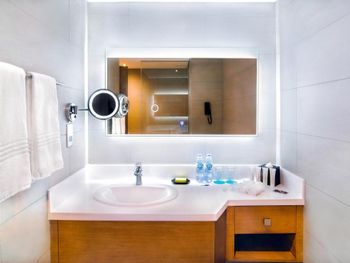 Отличный вариант для отдыха между рейсами. Рядом остановка автобуса А1 в аэропорт и Абу Даби Молл. До Лувра 10 минут на яндекс такси. Заселили на 2 часа раньше и сделали апгрейд номера.