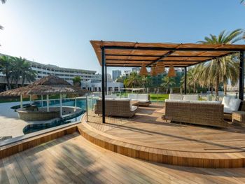 расположение отеля просто отличное для пляжного отдыха . Есть собственный пляж , бассейн с баром . на территории несколько ресторанов , все было вкусно . так же отличный тренажерный зал !Рядом тц Абу Даби Молл и Галерея
