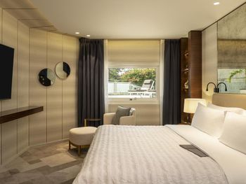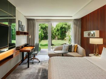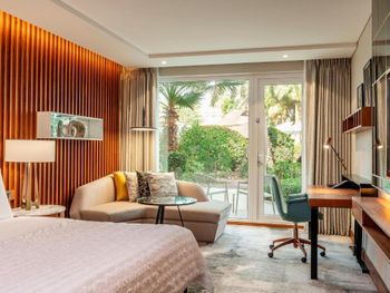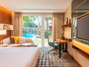 Бронировали номера с выходом к бассейну, но в номере 1018 выход перекрыт диваном. Завтраки не очень хорошие, остальные рестораны сильно завышена цена, еда посредственная. В целом отель не новый. Бассейн маленький, лежаки грязные, полотенца старые. Шумоизоляция отсутствует, отель только на одну ночь и то цена завышена.