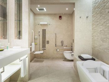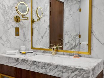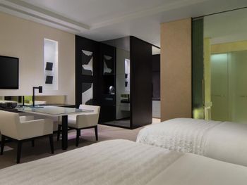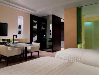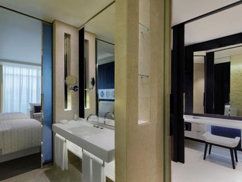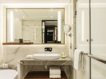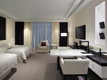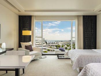 Все номера отеля Le Méridien Dubai & Conference Centre оформлены в роскошном стиле и оснащены 32-дюймовым ЖК-телевизором, в них установлены французские окна. В ванной комнате с тропическим душем предоставляются халаты и тапочки.