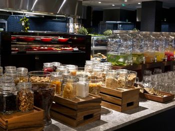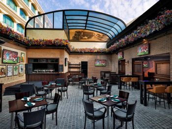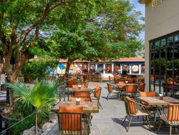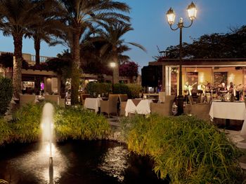 На территории работают многочисленные рестораны на любой вкус: от пиццерии Casa Mia с дровяной печью до ресторана Kiku, в котором прямо за столиком для гостей приготовят блюда в стиле тэппанъяки.