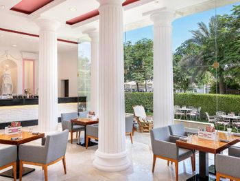 Шикарный завтрак, отличный персонал! Трансфер до аэропорта. По прилету встретили с табличкой и отвезли в отель (50AED)