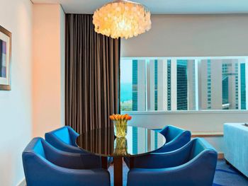 Почувствуйте себя знаменитостью благодаря великолепному сервису в Le Royal Meridien Abu DhabiМы работаем над переводом этого описания на ваш язык. Приносим извинения за неудобства.Discover \'la dolce vita\' at Le Royal Méridien Abu Dhabi, where a 5-star haven awaits in the city\'s central business district. Revitalized with Midcentury Modern flair, the iconic avant-garde hotel is surrounded by shopping malls, parks, major company headquarters and only a few steps to the stunning Corniche Beach, ensuring an ideal retreat for both business and leisure. Experience timeless elegance in chic aesthetic guestrooms, enjoy a regal treatment at the exclusive Le Royal Club Lounge and unwind at the outdoor pool oasis. Taste the uncommon at award-winning restaurants featuring the 25-year old PJ\'s Irish Pub and the city\'s only revolving lounge with breathtaking sea views, Stratos. Explore more than 2,000 square metre of creative meeting spaces and enchanting wedding venues, uniquely distinguished as the only destination where events are embraced in the warm glow of natural daylight, ensuring an incomparable experience.Парам особенно нравится расположение — они оценили проживание в этом районе вдвоем на 9,0.Расстояние, указанное в описании, рассчитано с помощью © OpenStreetMap