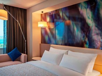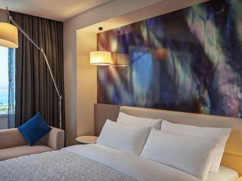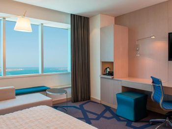 Сам по себе отель приятный , светлый , большой и чистый. Номера просторные с большими удобными кроватью. В номере были халаты, тапки и немало важно хорошая уходовая косметика . Номер дали с видом на море .