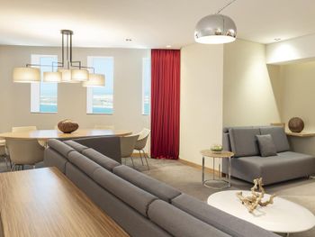 Удобное место в центре. Рядом есть детские площадки и парк. Море на машине не далеко. Качественный отель стоит своих денег. Персонал на уровне, особенно отмечу сотрудницу рецепции Rihab, работает чётко, быстро и приятно. Заселила раньше времени в номер, мы были с детьми с ночного перелёта. Предложила спец. цену на ужин.