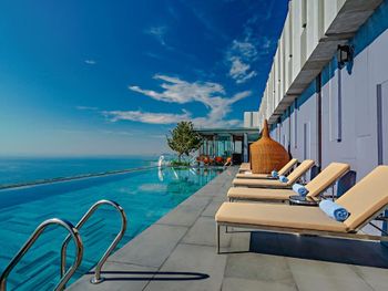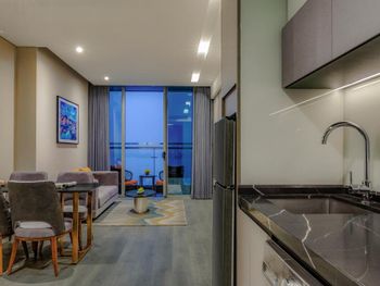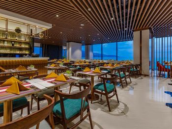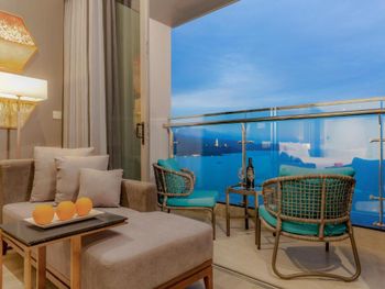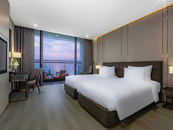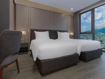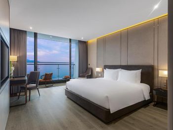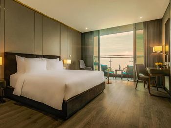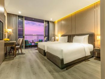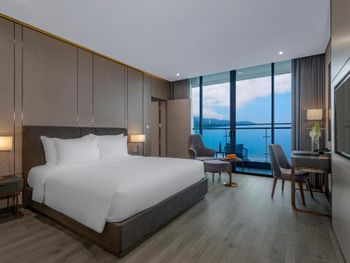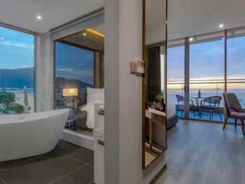 Стильный дизайн и хорошо продуманная эргономика номера (кроме балкона). Приветственный набор превзошел ожидания, за долгий постой даже принесли потом вторую тарелку фруктов. Отличная детская игровая комната, ребенка было не вытащить оттуда. Отличные разнообразные завтраки. Бассейн на последнем этаже с отличным видом на море. Впритык к отелю есть серия граффити про рыбацкий быт вьетнамцев, очень здорово сделано.