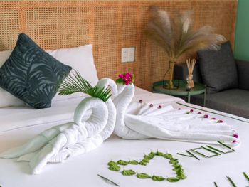 В номерах Leaf Hotel Phu Quoc установлен кондиционер, сейф и телевизор с плоским экраном. Среди прочих удобств — письменный стол, чайник, холодильник и мини-бар, а также собственная ванная комната с душем. В собственной ванной комнате есть бесплатные туалетно-косметические принадлежности. Гостям Leaf Hotel Phu Quoc предоставляются постельное белье и полотенца.