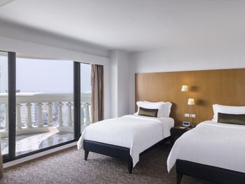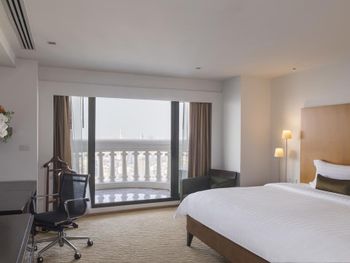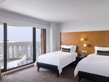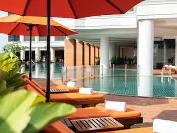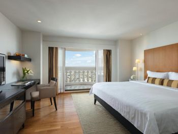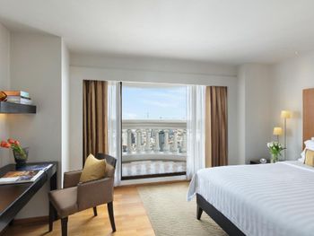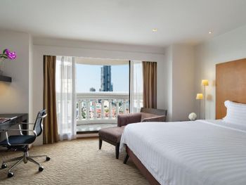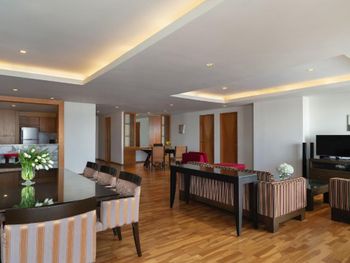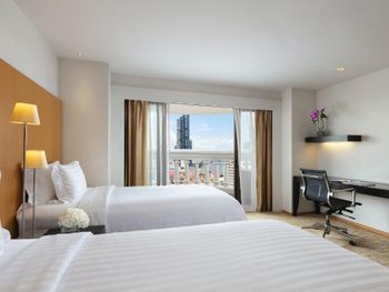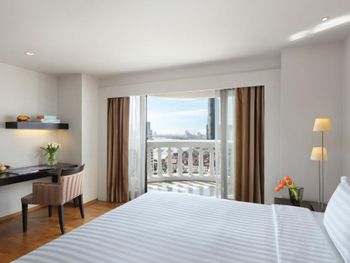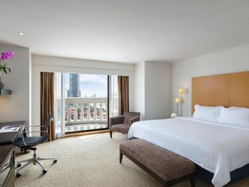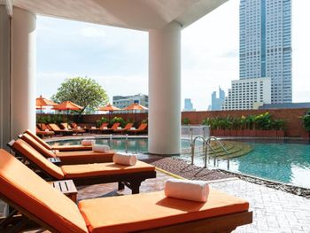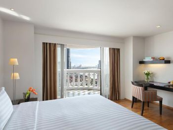 При бронировании указывал номер для курящих с одной большой кроватью. В итоге при заселении нам дали номер для некурящих. При звонке на ресепшн сказали что нет подходящих номеров и могут предложить или номер с 2 отдельными кроватями или доплатите за повышение номера на еще более дорогой, при условии что и так был заказан Клубный номер Люкс. При посещении Sky Bar естественно удивил просто неадекватный ценник в 1400 бат за коктейль. При этом на барной стойке стоят замотанные скотчем светильники )) Неоправданное сочетание цена качество от всего отеля. Номера старые, нет никакой реновации хотя уже давно требуется. Бассейн маленький и холодный. Спортзал есть просто для галочки так же безумно маленький.