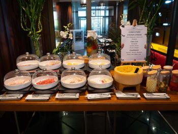 Гостям lebua at State Tower предлагается завтрак «шведский стол». При lebua at State Tower работает ресторан, где подают блюда китайской кухни, блюда французской кухни и блюда индийской кухни. Гости могут попросить приготовить вегетарианские, веганские и безглютеновые блюда.