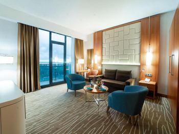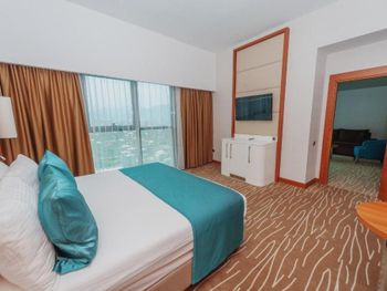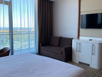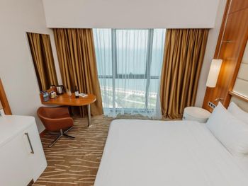 Отель просто с невероятными видами на набережную, и очень-очень красивые закаты! Отель новый, чистый, персонал очень доброжелательный, находится рядом с торговым центром и прогулочной набережной. Забронировали всего на сутки (после печального опыта с отелем JRW Welmond), при заселении в отель было что-то вроде розыгрыша и мы выиграли бесплатный ужин! Заселились и в номере нас ждал приятный сюрприз в виде десертов! Было очень приятно! Завтраки и ужин были очень вкусными, разнообразными, было и мясо, курица и морепродукты! Очень вкусные десерты! Отель понравился, остались еще на несколько дней! Хочется отметить парня с ресепшен - высокий, худощавый с бородой, если не ошибаюсь Давид, спасибо за всё! Благодарю таким работникам хочется возвращаться в отели снова!