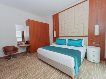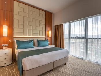 Хотим сказать большое спасибо администраторам отеля и менеджеру Анри. Очень вежливые, доброжелательные люди! Номер был просторный, с хорошей мебелью и потрясающим видом из окна. Также в отеле можно бесплатно пользоваться хамамом, сауной и двумя бассейнами. Они чистые, комфортные и достаточно большие. Заказывали доставку еды в номер и напитки в баре - очень вкусно, много и иногда даже дешевле, чем в ресторане рядом Отель находится далеко от центра, но рядом есть ТЦ, рестораны, круглосуточный магазин, несколько минут идти до моря. В общем, мы не ощущали себя вдали от цивилизации.