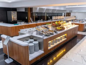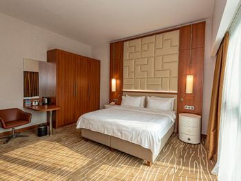 Попасть на завтрак практически не возможно, еду разбирают не успев разложить ее на раздачу. Два раза успели взять варенные яйца и ужасный кофе, на этом решили больше не ходить на завтрак, тк смысла нет от слова совсем. Лифт это отдельная боль, ждать минут 10 и не факт, что ты попадешь в него с первого раза. Мини бара нет, рум сервис есть, но он не работает, ждать заказ можно больше часа и не факт, что его принесут. Отель находится на окраине, добраться можно только на такси.