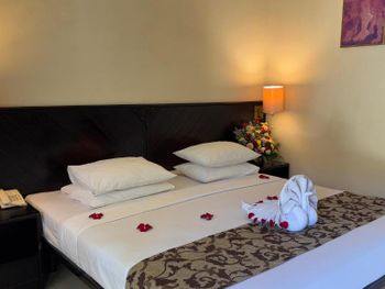 Грязь и ещё раз грязь в номерах , их будто совершенно не убирают после предыдущих постояльцев. Полотенца серые, бельё с пятнами . Всё такое убитое , затёртое , что неприятно находиться в номере. Можно грешить на цену, но за такие деньги на Бали можно снять гораздо лучше номер. Завтрак скудный , но дешёвый , можно взять в принципе. Ну и конечно же картинка на Букинге не соответствует реальности.