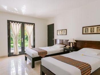 Современные номера с собственными балконами окружены тропической зеленью и украшены балийской графикой. В каждом номере есть телевизор, транслирующий спутниковые каналы, мини-бар и собственная ванная комната с горячим душем.