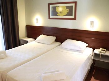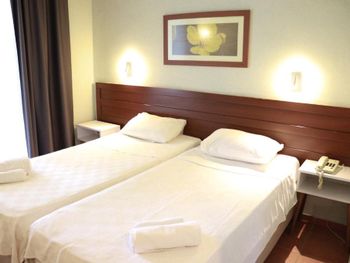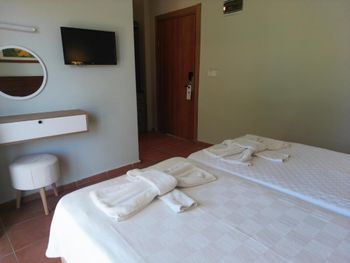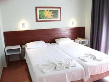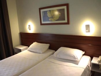Слышимость в номерах очень хорошая. Отлично слышно когда наверху смывают унитаз. В номере прокурено, сильно пахнет застоявшимся сигаретным дымом. Воды питьевой в номере нет, видимо из-за того что это апартаменты надо покупать свое. Большая кровать состоит просто из двух отдельных кроватей с двумя отдельными матрасами. Отель находится далеко не на первой линии, до пляжа надо ехать на машине 4 километра.