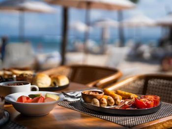 At Sea Sky Restaurant, guests can sample a variety of Indonesian, international and Western dishes while enjoying scenic views of the ocean. In-room dining is also possible.