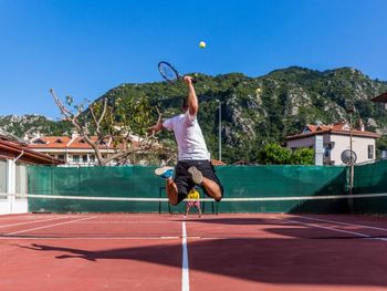территория пляжа маленькая,лежаков на всех не хватает,море не очень чистое из за большого количества туристов.