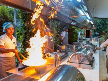 В главном ресторане сервируется "шведский стол" на завтрак, обед и ужин. Во второй половине дня гостям предлагается чай или кофе с пирожным, а вечером можно отведать суп. Помимо этого, в отеле работают 3 бара и ресторан с обслуживанием по меню.