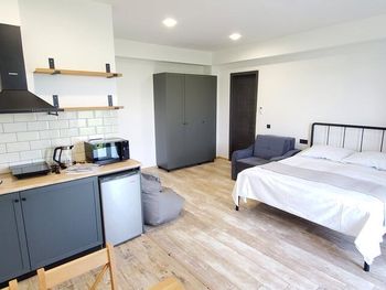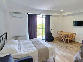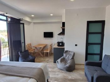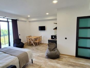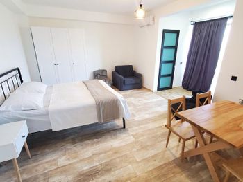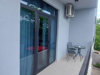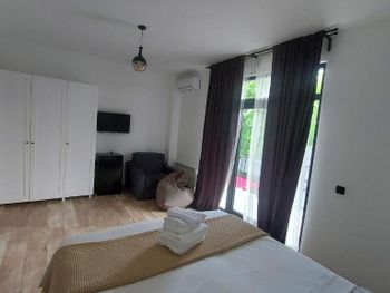 Отличный новый комфортный гостевой дом. 10 минут до моря. Всё было чисто и удобно. Номера огромные, с балкона очень красивый умиротворяющий вид. Нам бесплатно повысили уровень комнаты с кухней - очень удобно, даже была стиральная машина своя. Понравилось также, что были 2 стола: один большой в комнате (+4 стула), и один на балконе (с 2мя стульями). Также покорило витражное окно в ванной :)