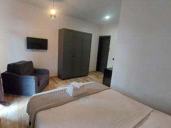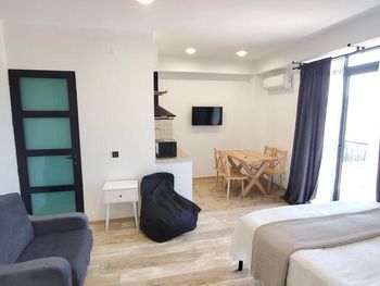 Красивый удобный номер, в номере есть всё, что нужно, даже плита и стиральная машина. До моря 5 минут, есть проходик прямо перед отелем. Восхитительные завтраки, к тому же немного разные каждый день. Отличнейший ресторан при отеле. Вообще и отель и ресторан качеством и стилем очень выделяются из окружающей застройки, кажется, что они упали с неба или телепортировались откуда-то из Австрии.
