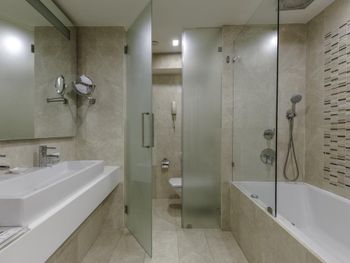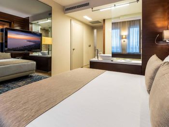 Заезд На заказанный тихий номер нам предложили 1 этаж около лифта окнами на проход между корпусами Вместо него дали другой… Окна выходят на стену.. номер - розетки отваливаются, сейф не работает, кондиционер не работает, дверь в туалет стеклянная без защелки (вообще не предусмотрено). Написано что есть рум сервис, но меню в номере нет- как заказать? Минибар пустой - приносили только воду. Завтрак - еда средне. Кофе за доп оплату. Персонал разный / первые два дня было норм, потом поменялись - какие-то агрессивные, при этом посуда грязная, со столов не убирают, то что заканчивается не приносят. Спа. Баня/хамам норм, но администратор считает норм взять открыть все двери и начать уборку.. плюс пару раз приходили, баня выключена. Ее конечно включали, но это полчаса пока нагреется.. ресторан на крыше .. в два раза дороже аналогичных.