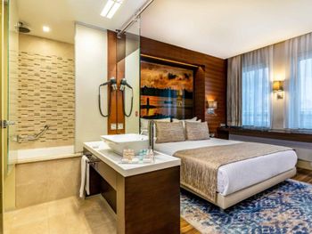 Не знаю почему у этого отеля 5 звезд, спать там ночью просто невозможно, очень шумно, стены картонные. Подъехать на авто к нему тоже невозможно. Отель очень "уставший".