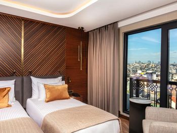 Очень двойственное отношение к отелю: - местоположение отличное, удобно и пешком до Галаты и остановка речного вокзала рядом - в номер всегда приносят воду, чай, кофе, сливки - вкусный и сытный завтрак с хорошим обслуживанием, но почему-то предлагают сразу кофе за дополнительную плату - красивая вью терраса на крыше с видом на Галату и Босфор - выдают халат и тапочки и все-все-все принадлежности(только вот халаты не первой свежести у меня были(