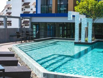 Отель расположен на оживленной улице рядом с 7 eleven, кафе и барами, массажными салонами. До моря 400м. В номерах чисто, убирались каждый день, бассейн небольшой, с подсветкой, кровати очень удобные и большие, была сушилка на балконе, персонал очень приятный.