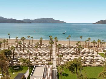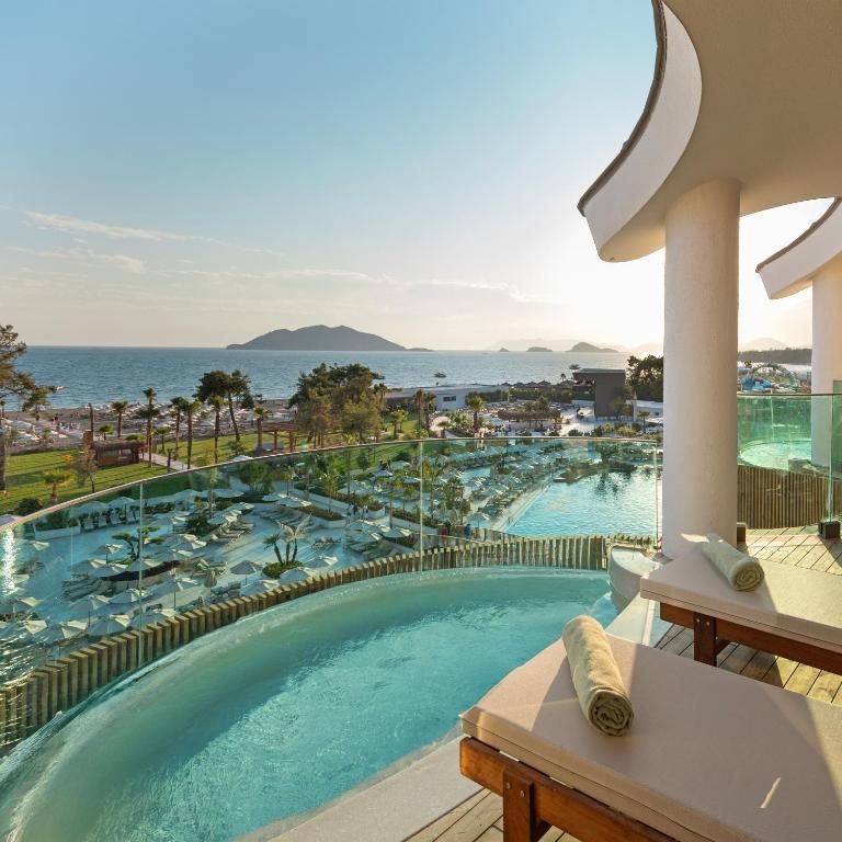 Все, великолепный персонал, при заезде повысили категорию номера, при выселении разрешили задержаться на несколько часов бесплатно. Номера просторные, чисто, мини бар пополняют регулярно. Все в отеле отзывчивые и не наигранно дружелюбные. Вкусная и разнообразная еда на шведском столе. Вечером проходили шоу и дискотеки, но этого совсем не слышно в номерах, великолепное зонирование, и семьям с детьми и людям которые хотят побыть в тишине найдется место. Шикарный чистейший пляж и море. В соседнем отеле теннисный корт нас бесплатно пустили и свозили на гольфкаре. Много ресторанов алякарт, но мы в них не попали. Отличный, большой спа. Везде не многолюдно и камерно несмотря на масштабы отеля. В самом отеле есть аллейка с магазинами и в 100 метрах от отеля улица с магазинами, аптеками. От центра Фетхие далековато, но из отеля не хочется выходить.